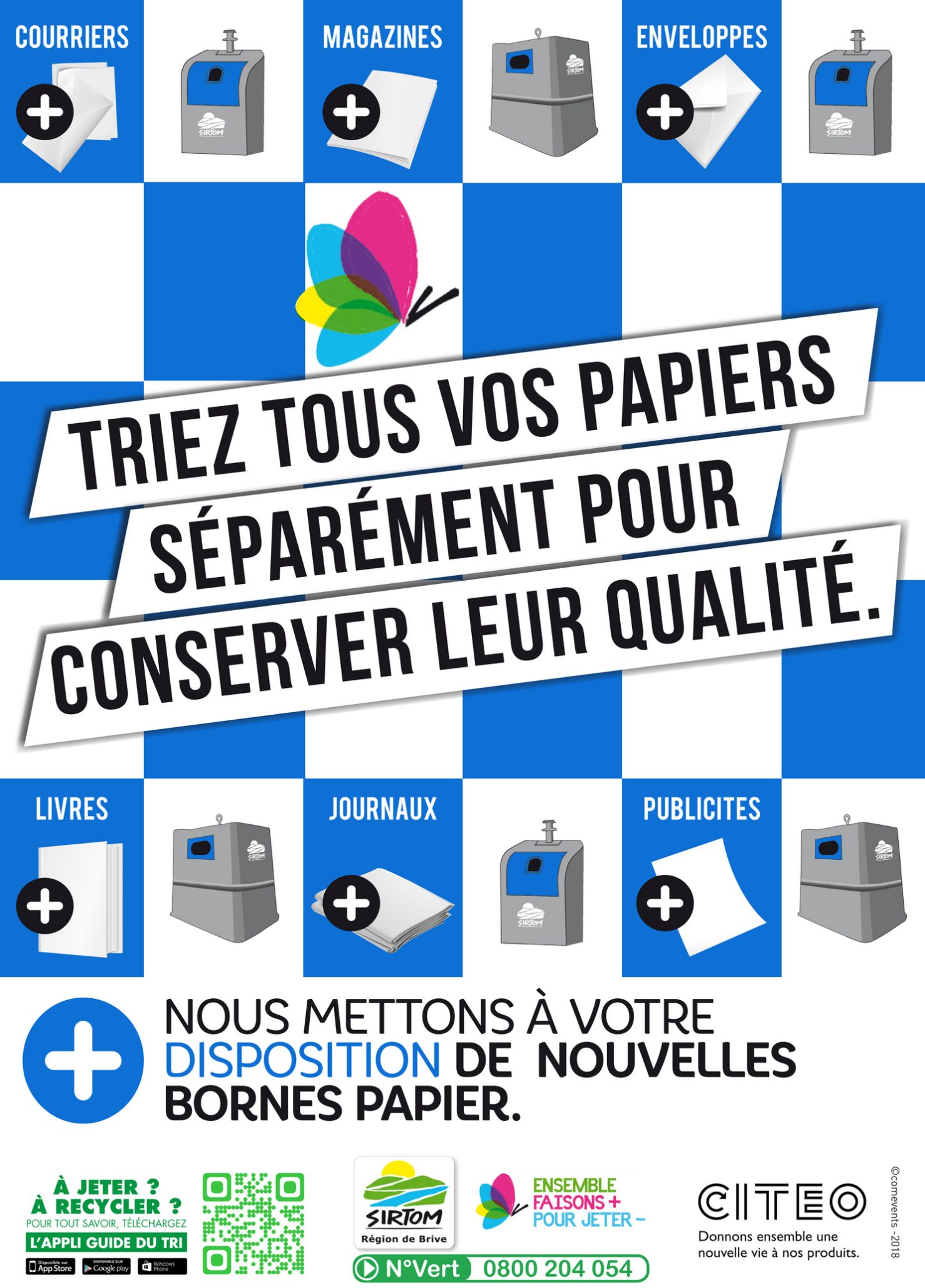 Ce changement va engendrer une quantité supplémentaire d’emballages dans les contenants de tri jaunes. Afin de libérer de l’espace pour ces nouveaux emballages et maintenir la qualité des papiers, nous vous préconisons de déposer tous les papiers dans les bornes de tri bleues déployées sur le territoire. Ces papiers seront ensuite directement acheminés chez les papetiers.