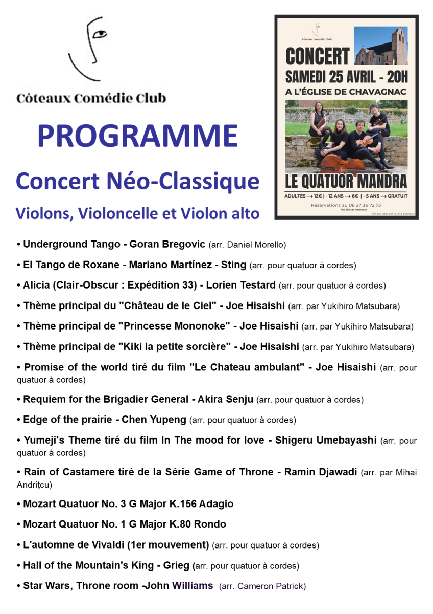 Samedi 25 avril - Eglise de Chavagnac - 20h00.