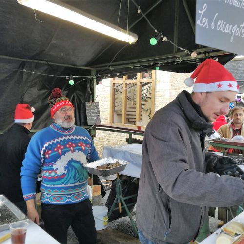 Buvette et gourmandises : réchauffez-vous avec un vin chaud parfumé ou une bière de Noël locale. Côté délices, retrouvez des crêpes, assiettes d’huîtres , sandwichs à l’andouillette, une généreuse assiette haricots-saucisses, et, pour les becs sucrés, de délicieuses tartelettes myrtille !